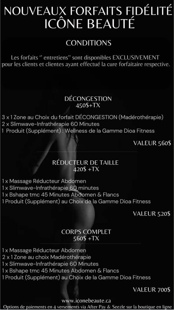 Exclusivement pour les clients et clientes ayant effectuer la combinaison » Corps Complet » , un forfait entretien à été formulé!